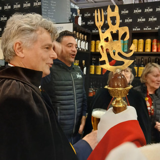 Nous avons défilé avec fierté entre les stands, rencontrant nos confréries amies et partageant des moments chaleureux. Ce fut aussi l'occasion d'introniser des personnalités venant d'horizons variés, comme des députés, un président de région, des directeurs, un brasseur, sans oublier les précieux employés de la brasserie.